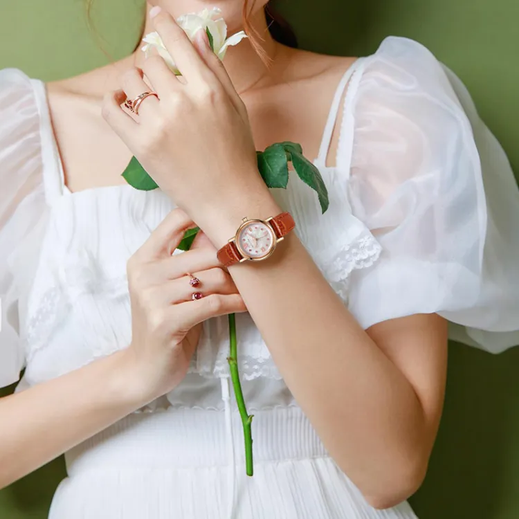 BRIGADA Floral Mist Collection Лотос Лепесток Узор Кварцевый механизм Коровья кожа Ремень Часы Женские часы