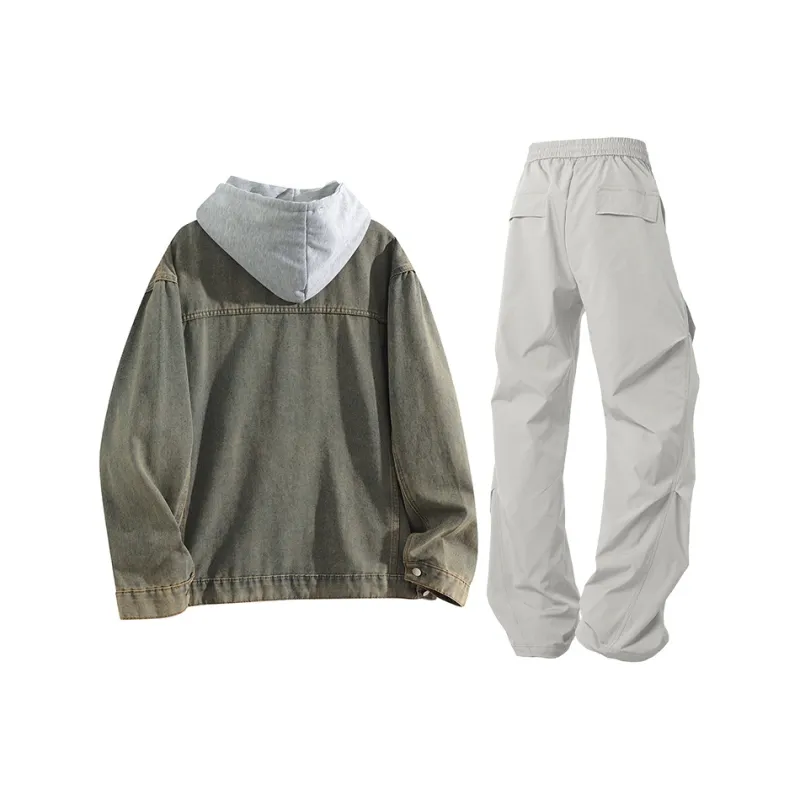 Вымытые Желтая Глина + Серый + Светло-Серый Парашютные Штаны