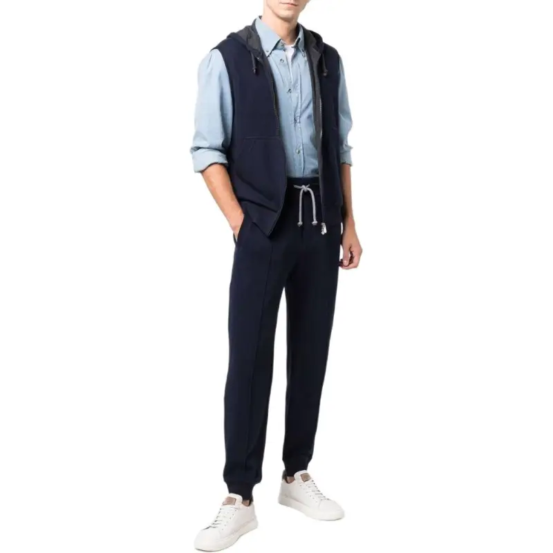 BRUNELLO CUCINELLI Вязаные тренировочные брюки мужские синие