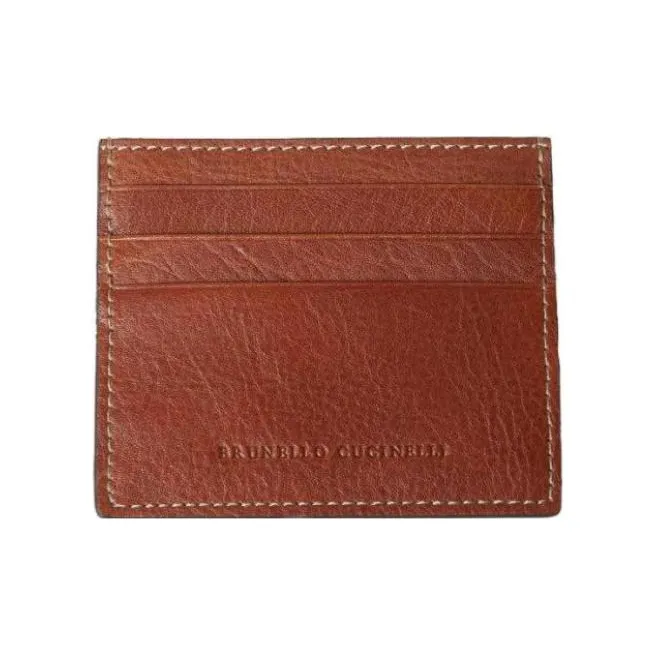 BRUNELLO CUCINELLI Кошелек из кожи держатель для карт мужской коричневый