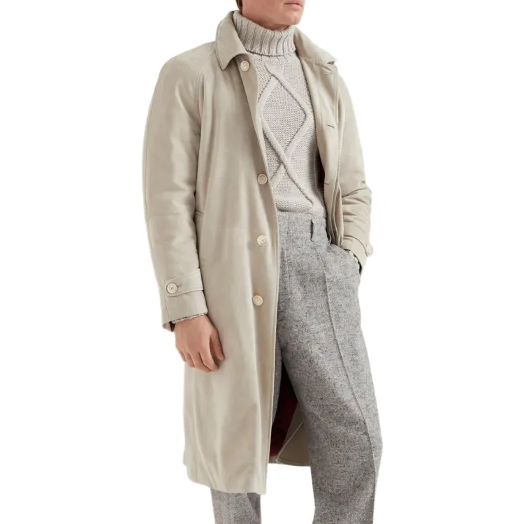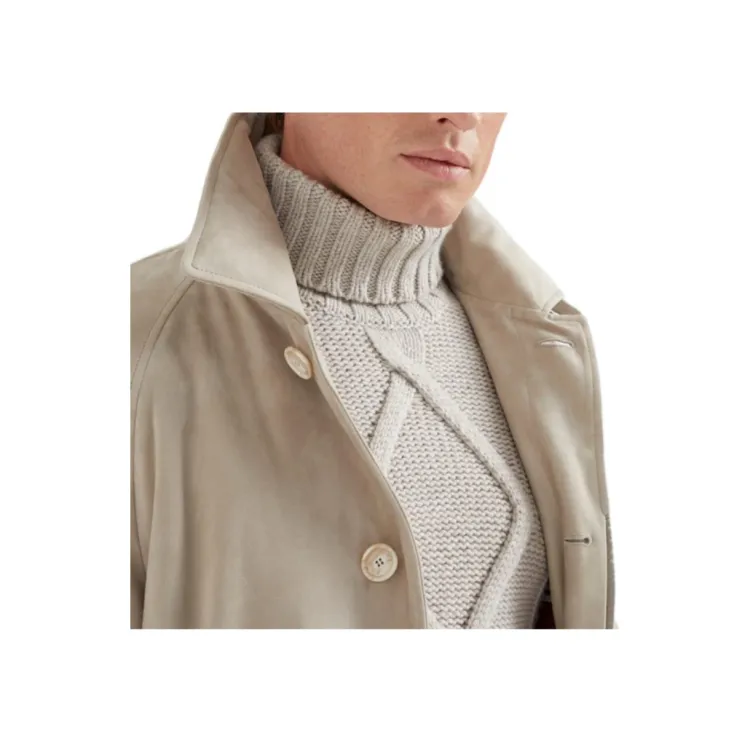 BRUNELLO CUCINELLI FW24 Кожаная куртка мужская цвет лайм серый