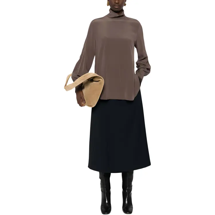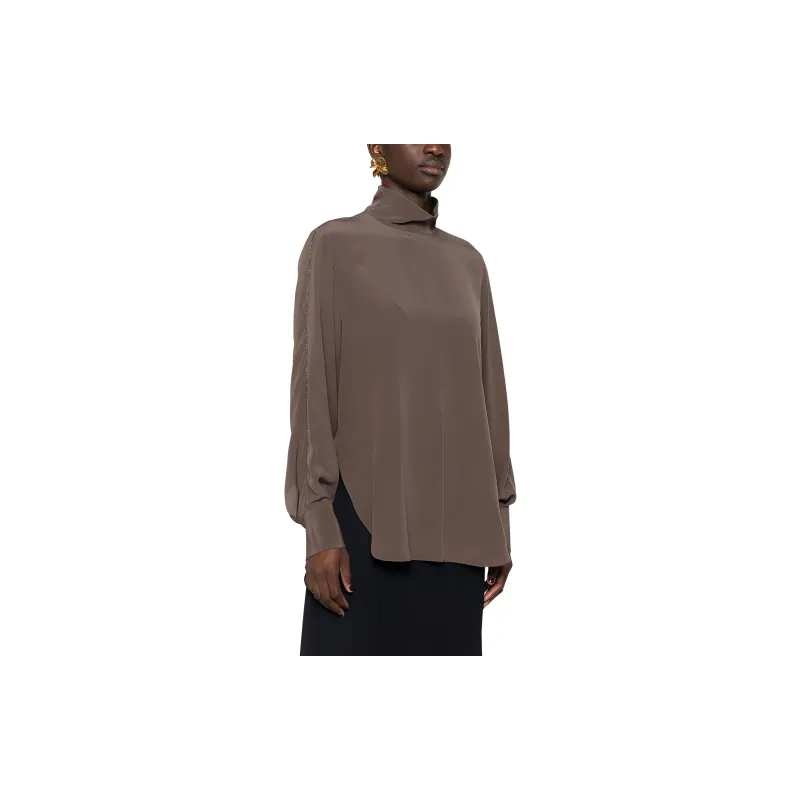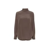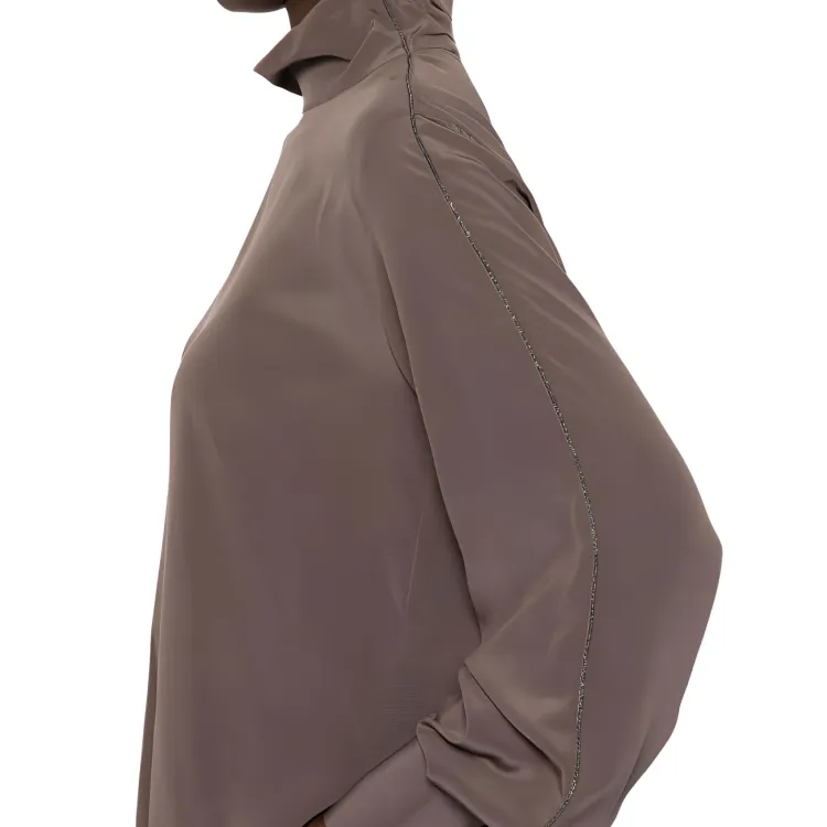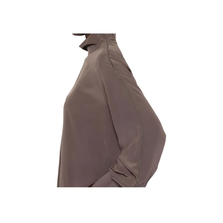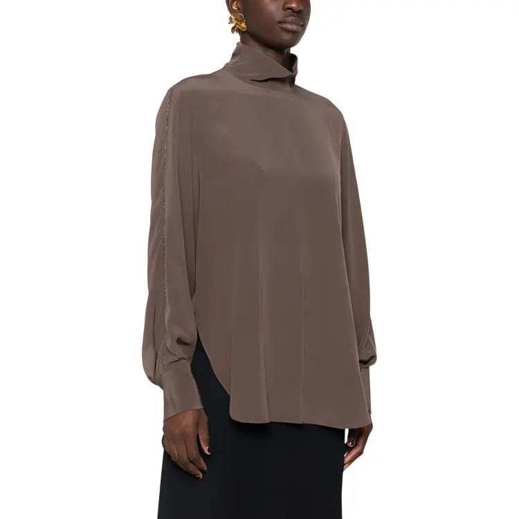 BRUNELLO CUCINELLI Однотонная водолазка с молниями свободный крой длинный рукав рубашка женская коричневый