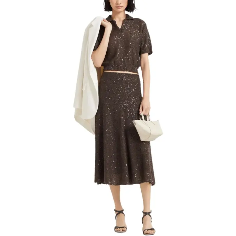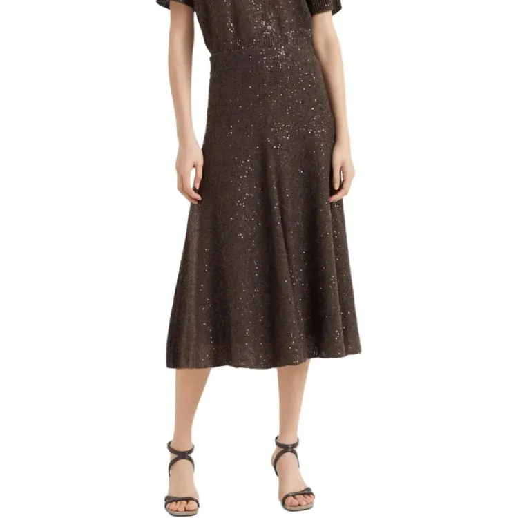 BRUNELLO CUCINELLI SS25 Повседневный Длинный Юбка Женские Шоколад