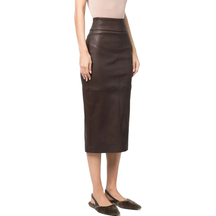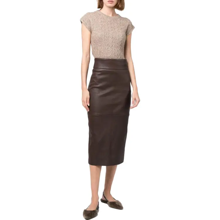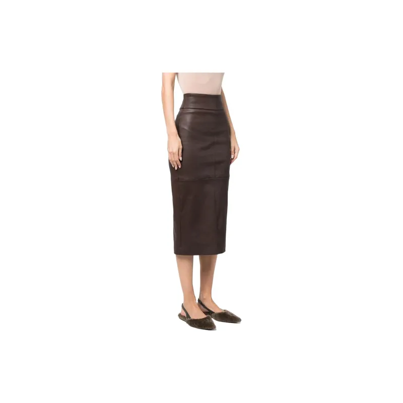 Brunello Cucinelli Шоколад Женские Кожаные Длинные Юбки