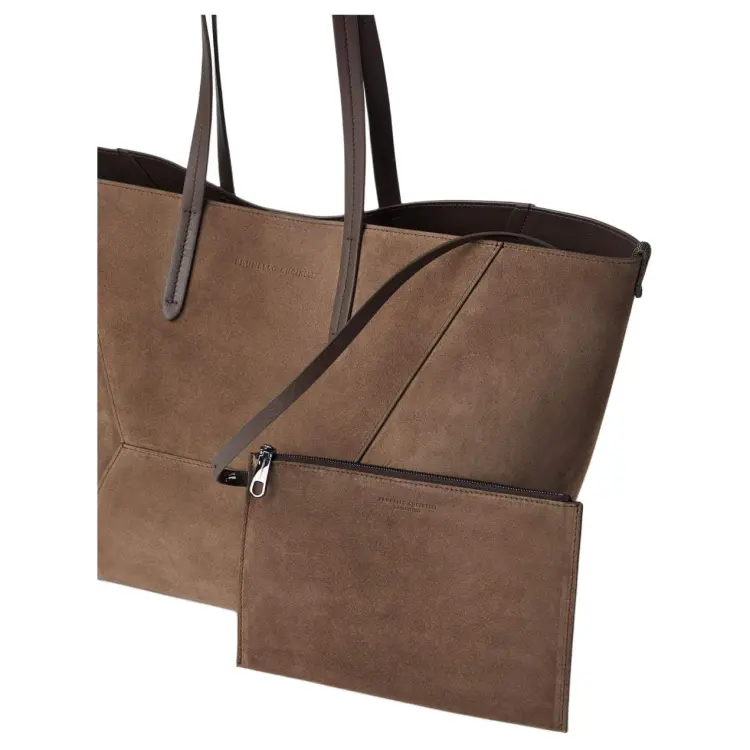 BRUNELLO CUCINELLI Замша Тоут Сумка Сумка для покупок Сумка на плечо Женская Коричневая