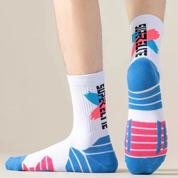 Баскетбольные носки, упаковка из 3 пар (белый, синий, розовый / белый, синий, зеленый / белый, серый, черный).