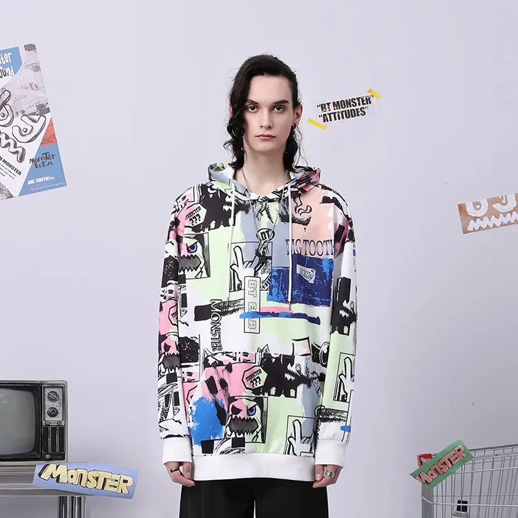 BT С капюшоном Свободный крой Толстовка Весна-Осень Зима Унисекс