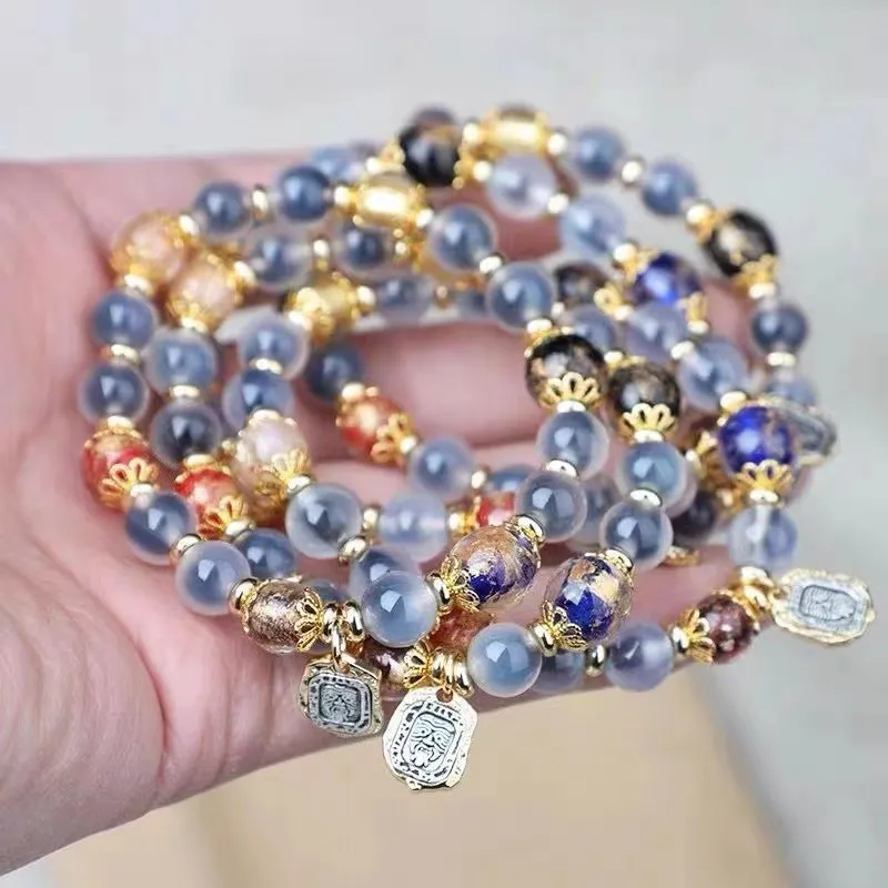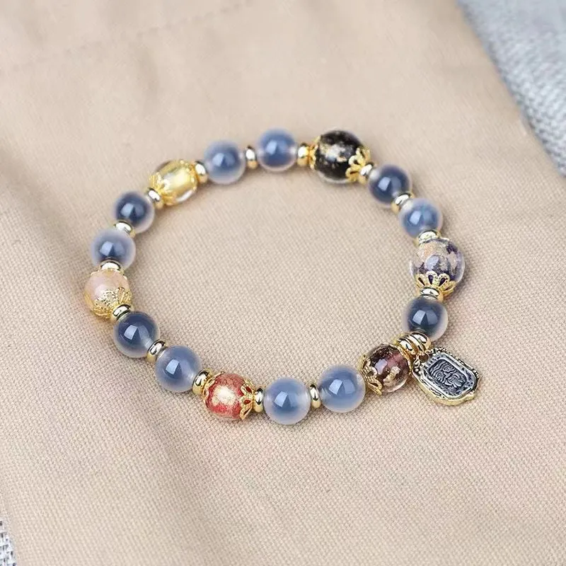 Ароматный Серый Глазурь Браслет с Полу-Карамельно-Коричневый Синий Сердце Браслет