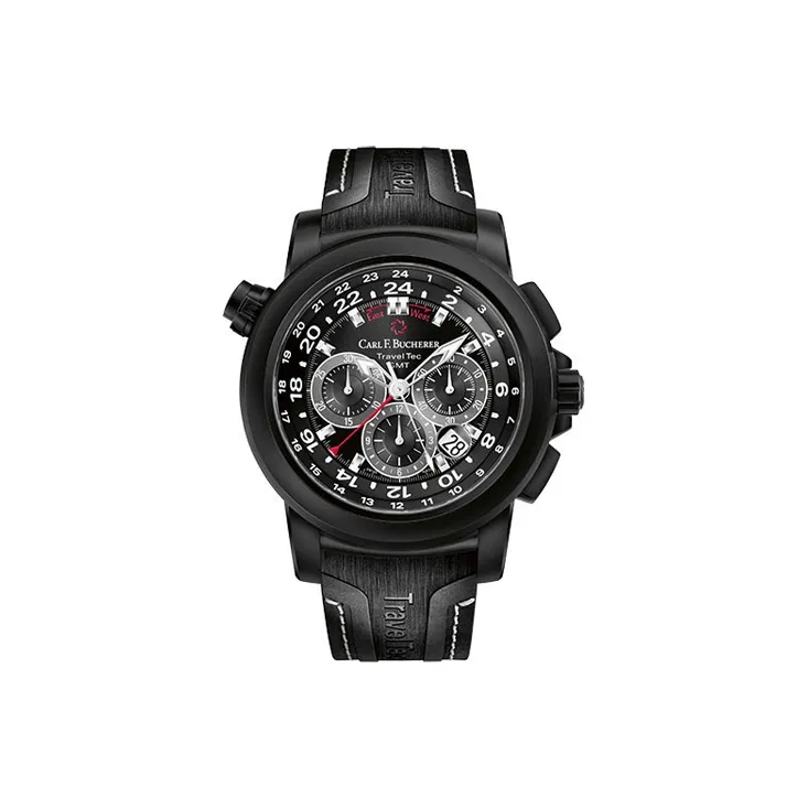 BUCHERER Автоматический Механический Часы Мужские Часы 46,6 мм Черный Циферблат Корпус из Нержавеющей Стали Резиновый Ремешок