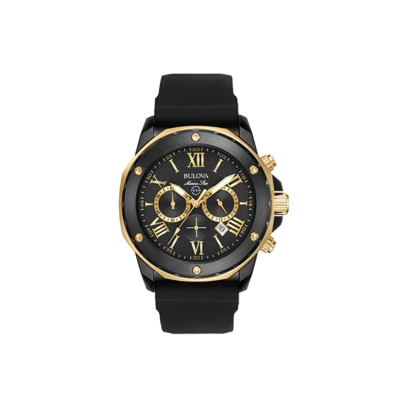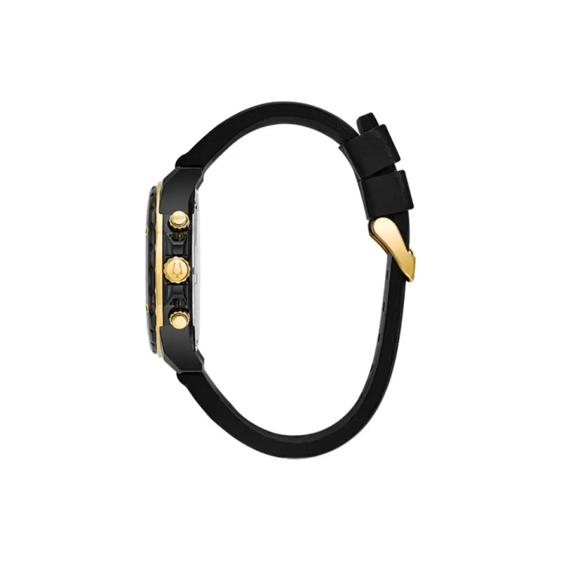 BULOVA Мужские часы Кварцевый механизм Силиконовый ремешок 44 мм Черный циферблат