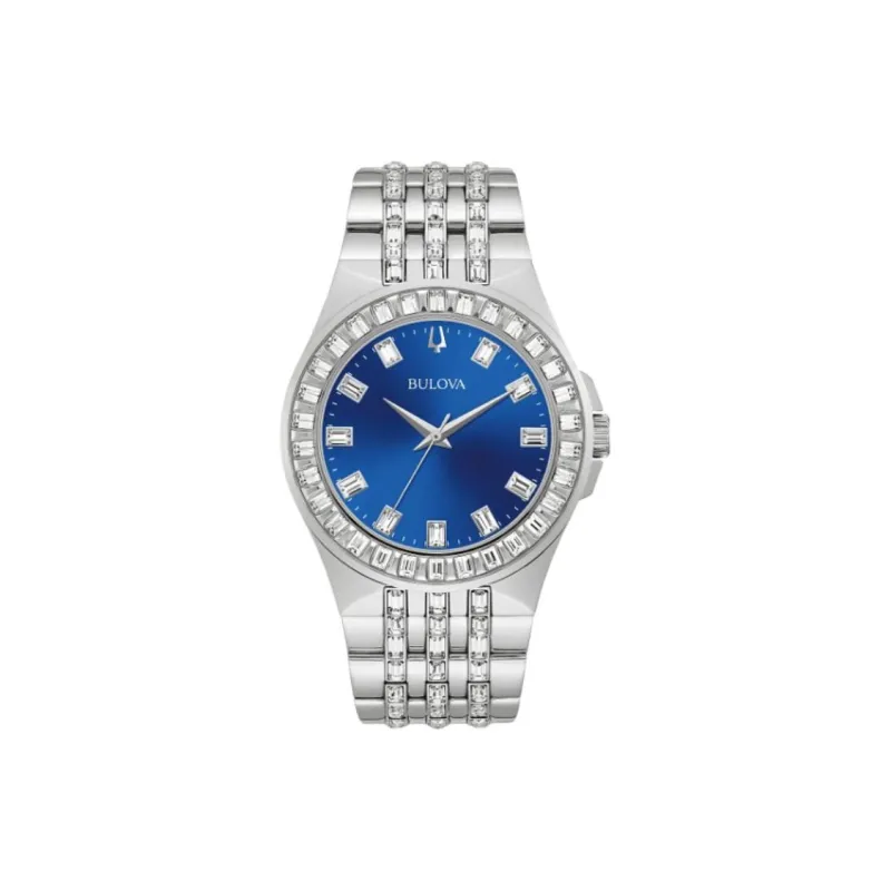 BULOVA Crystal Collection Мужские часы Кварцевый механизм Ремешок из нержавеющей стали 42 мм Синий циферблат
