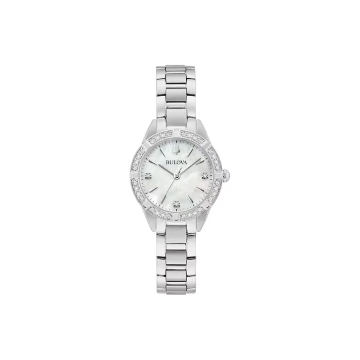 BULOVA Sutton Collection Женские часы Кварцевый механизм Ремешок из нержавеющей стали 28 мм Белый циферблат