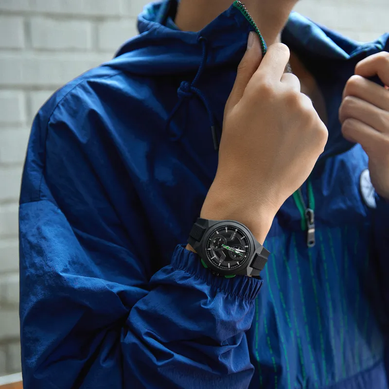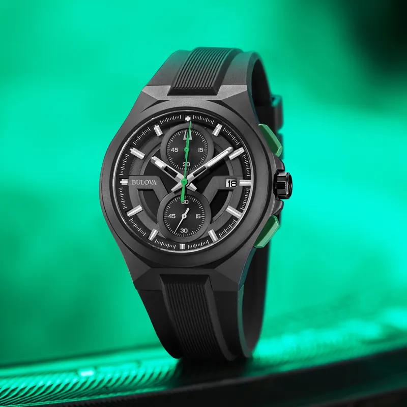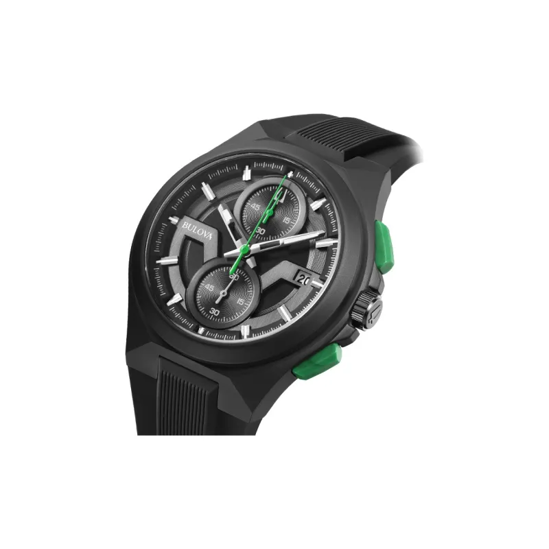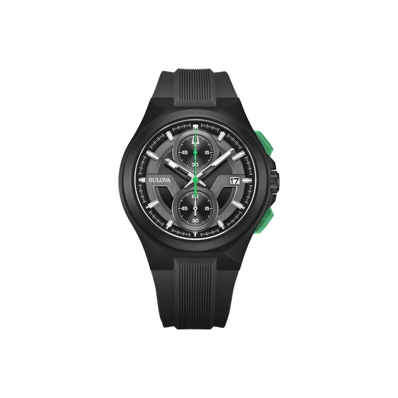 BULOVA Мужские часы Кварцевый механизм Резиновый ремешок 45 мм Черный циферблат 98B381