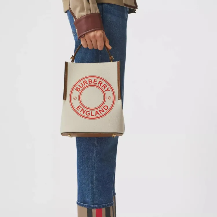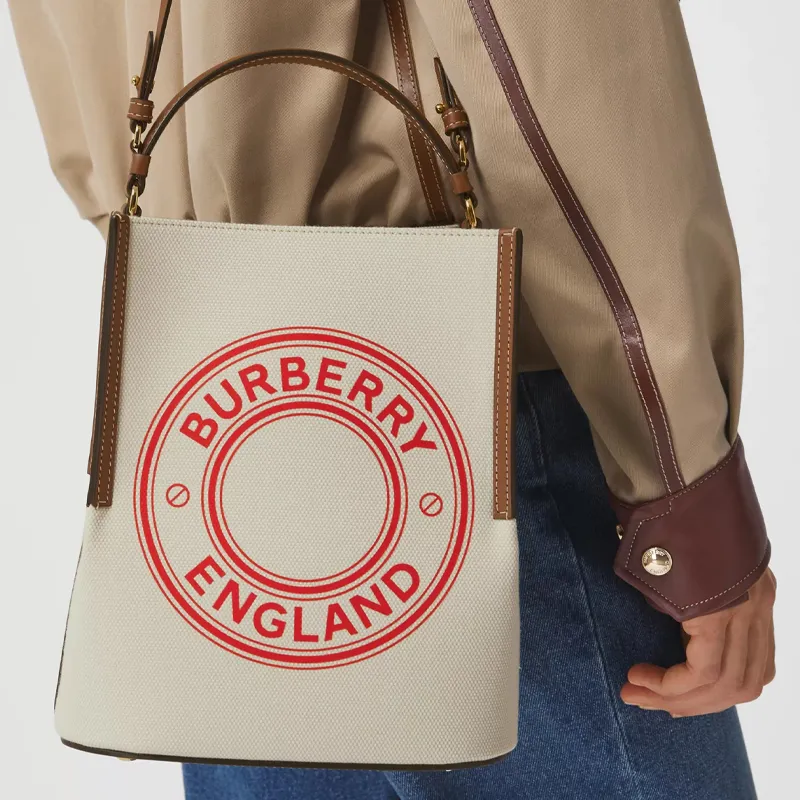 Burberry Canvas Bag Bucket Bag Crossbody Bag Small Shoulder Bag Women's Natural Tan Hot Red