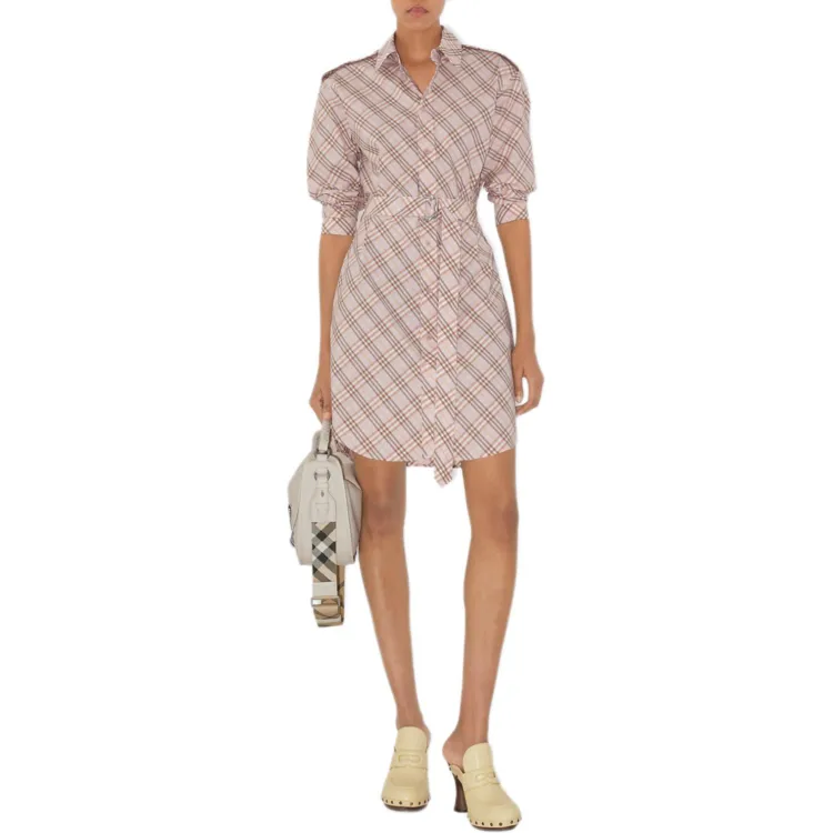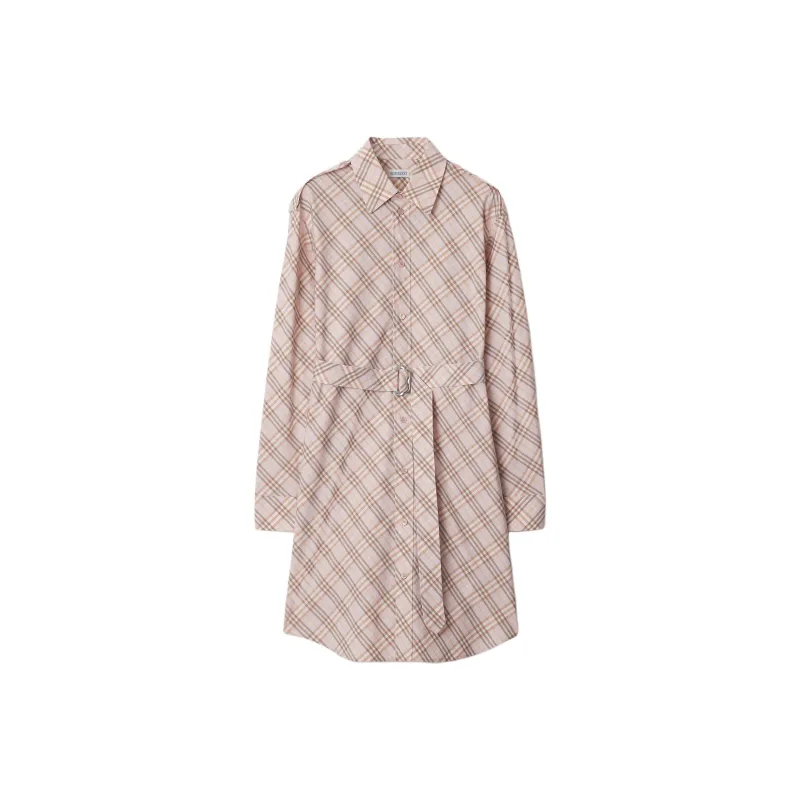 Burberry SS25 Длинное Платье с Длинными Рукавами Женское Розовое