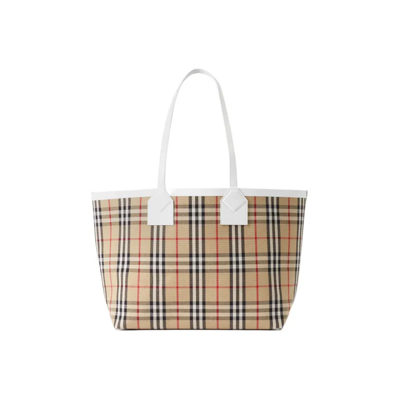 Burberry Хлопок Холст Тоут Сумка Сумка для покупок Холст Сумка Плечевая Сумка Средний Женская Светло-коричневая