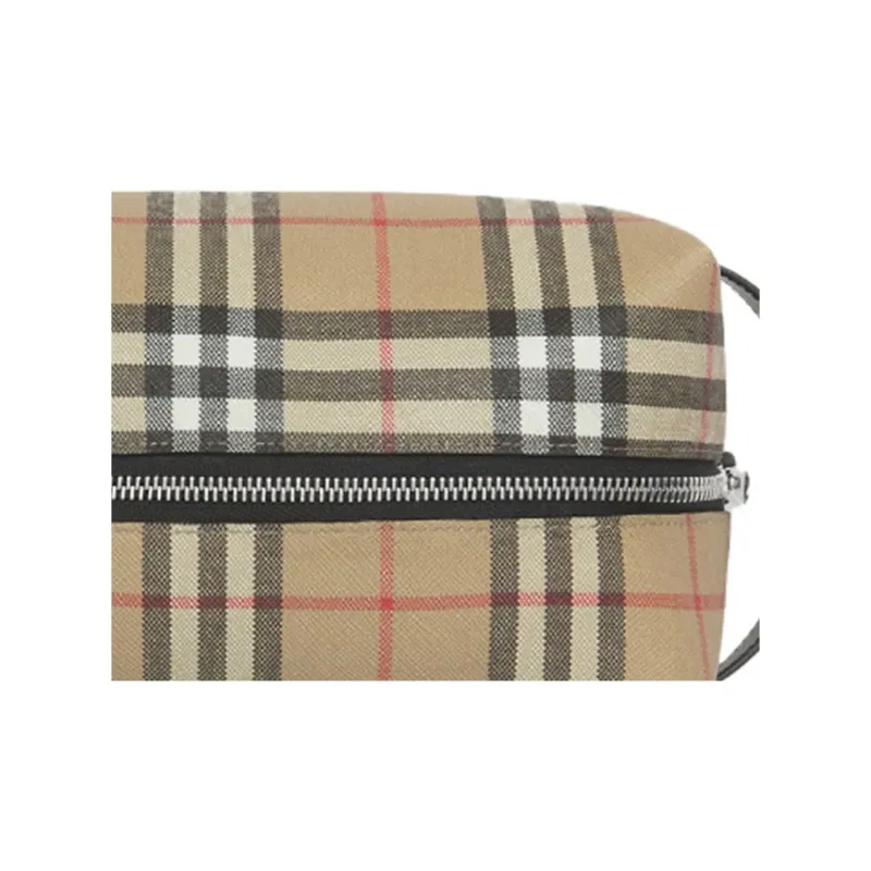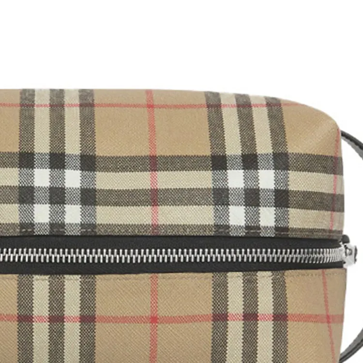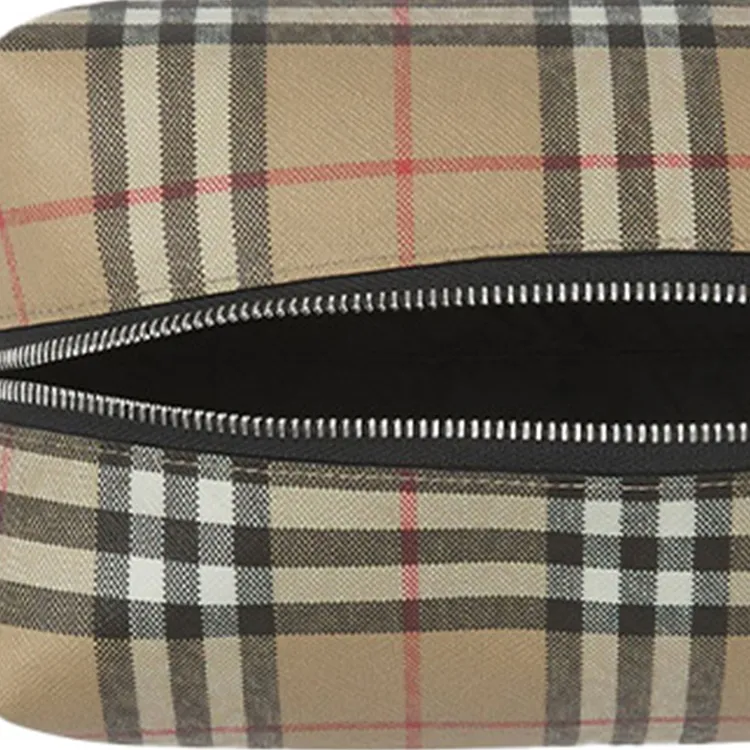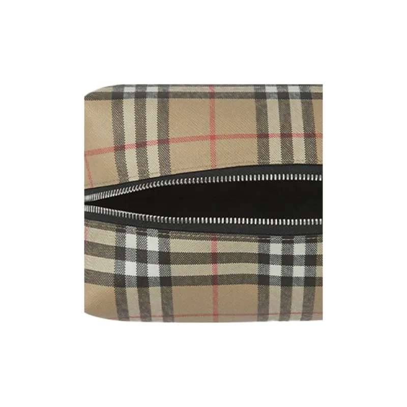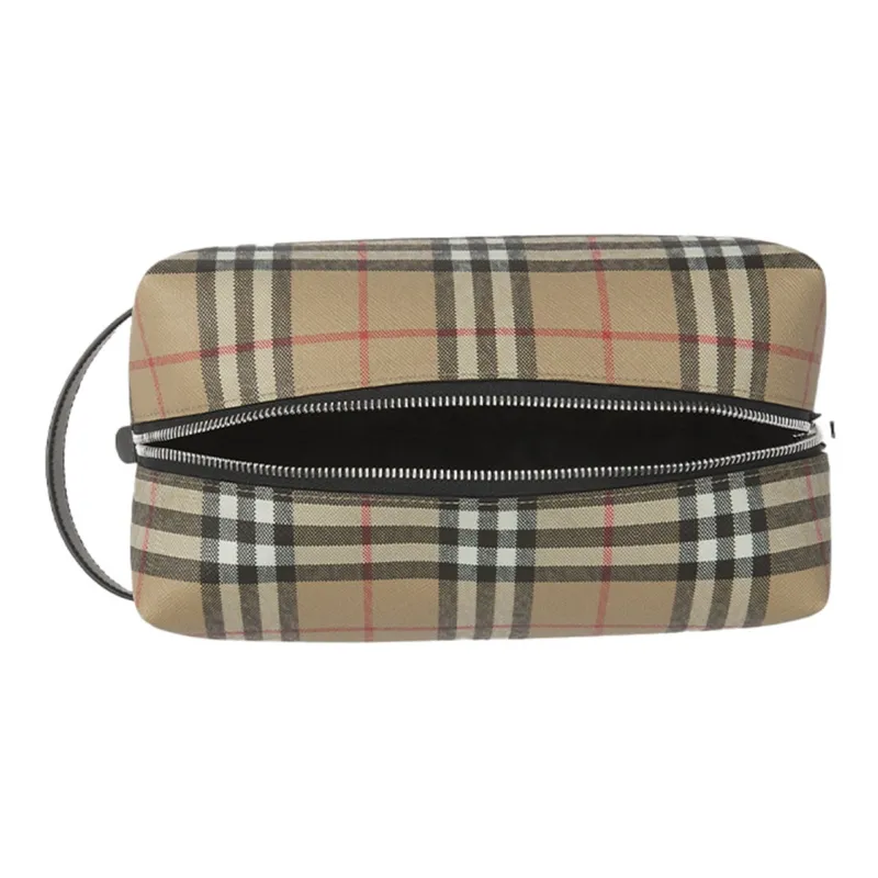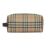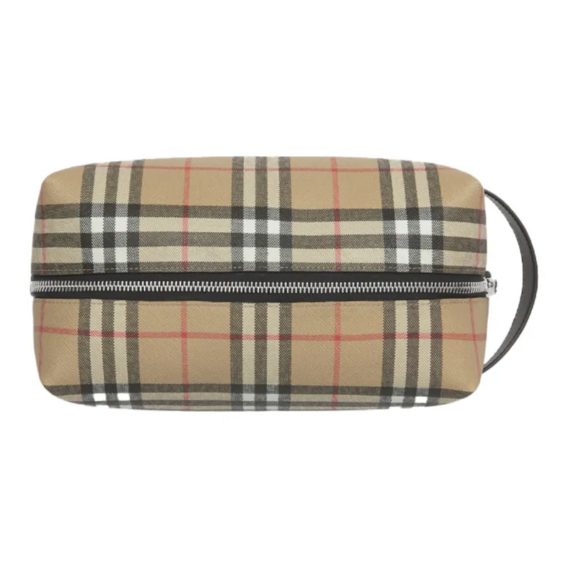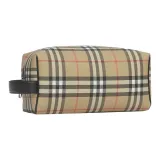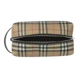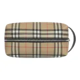 Burberry Винтаж Хлопок Коровья Кожа Полиуретан Клатч Путешественная Сумка Сумка для Хранения Унисекс Архивный Бежевый