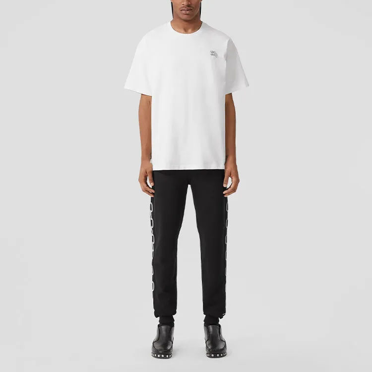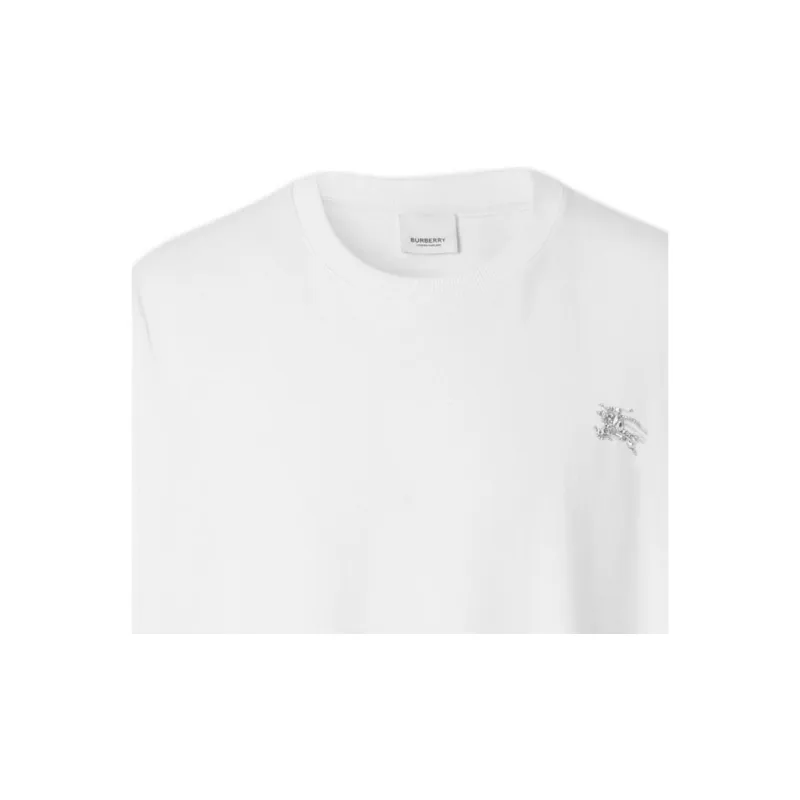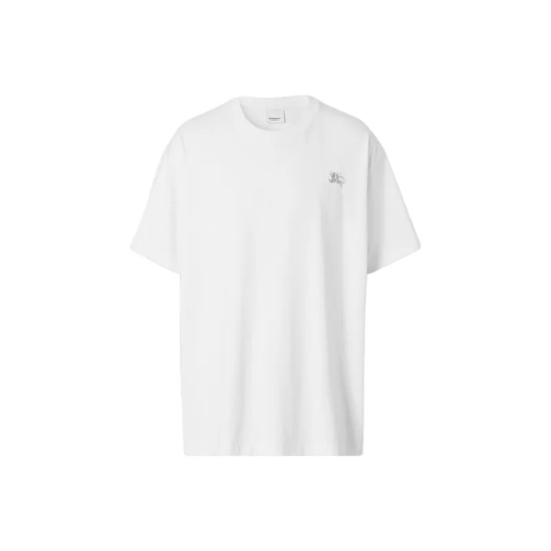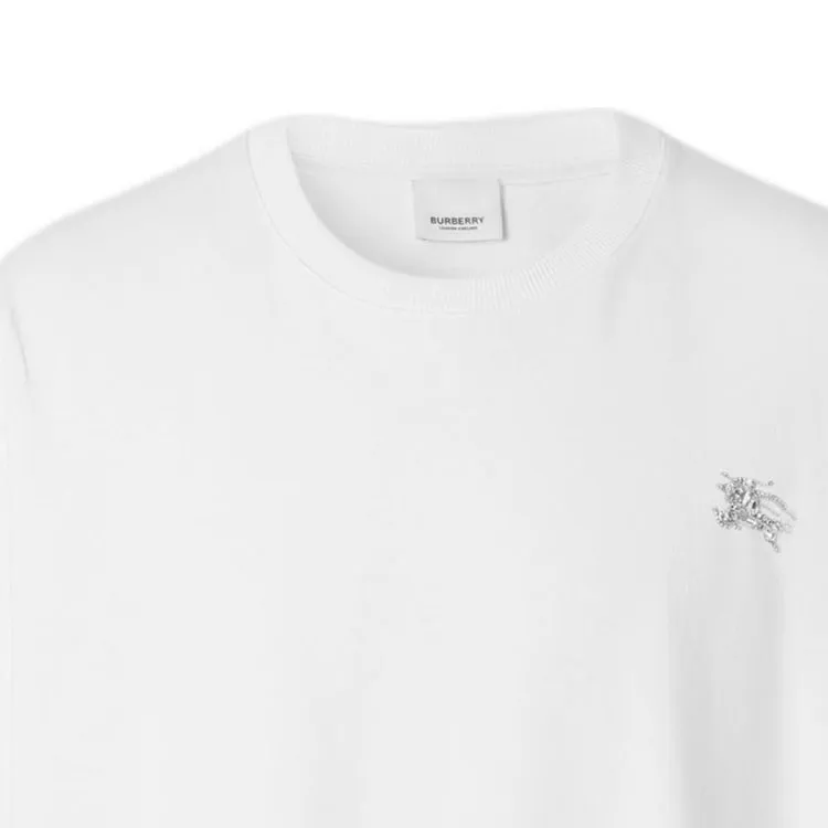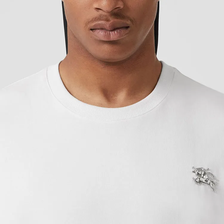 Burberry Однотонная Искусственный Кристалл Украшение Круглый вырез Короткий рукав Т-рубашка Мужская Белая