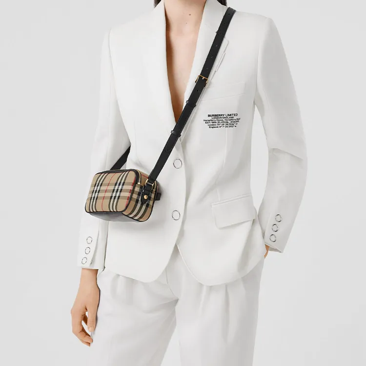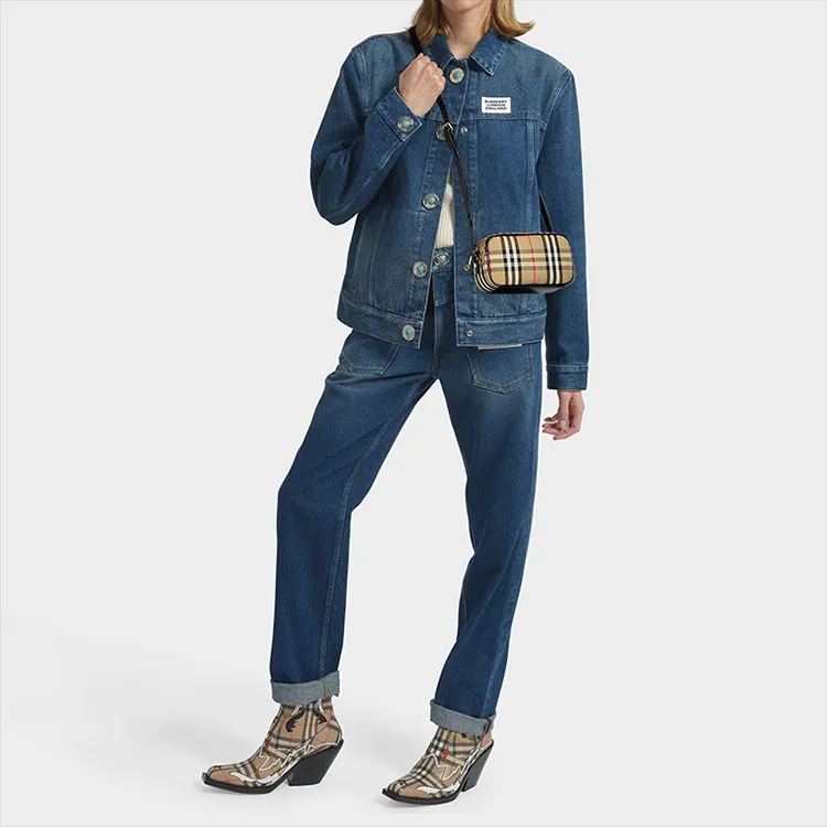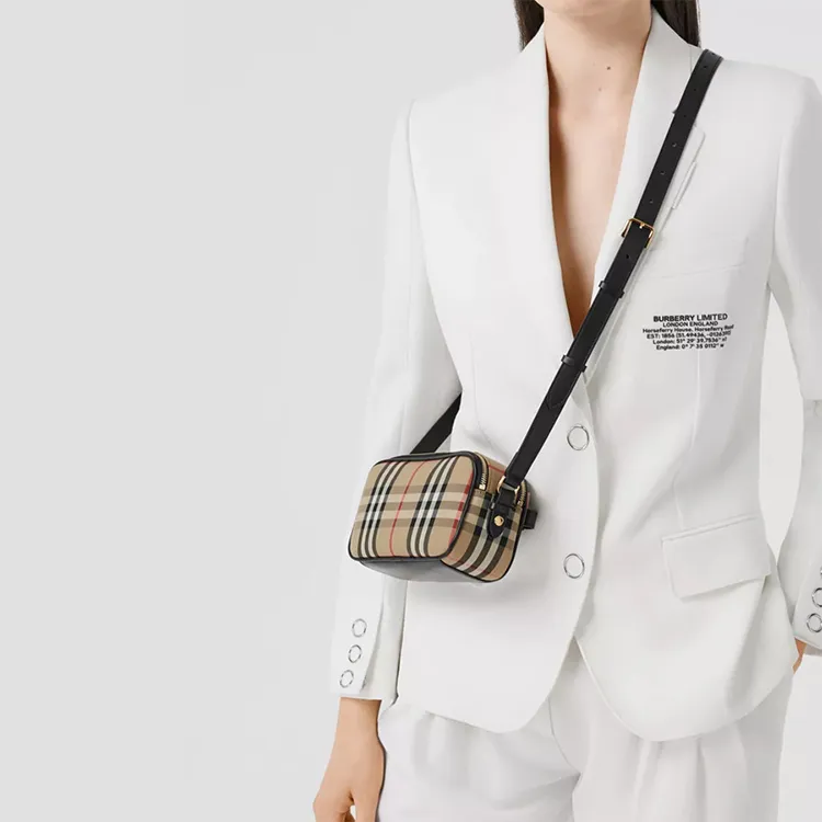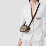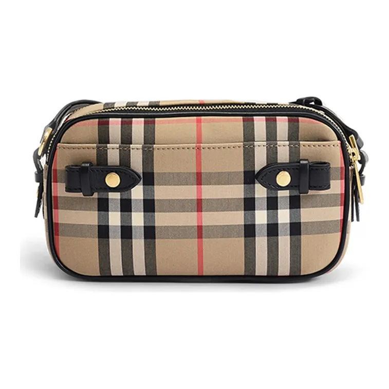 Burberry Ткань с кожаными вставками Бананка Camera Сумка через плечо Сумка на плечо Женская Желто-коричневая