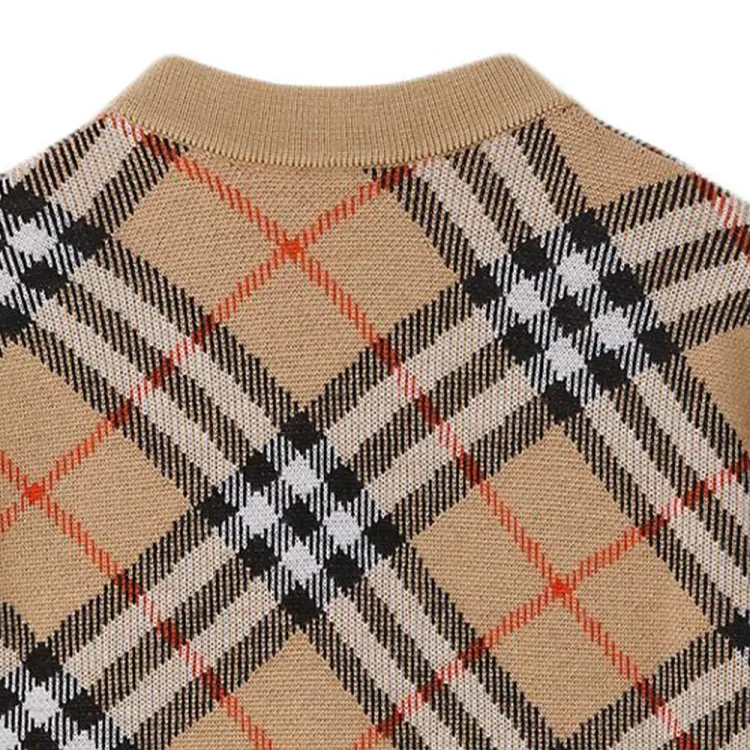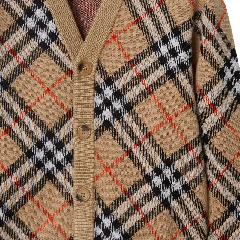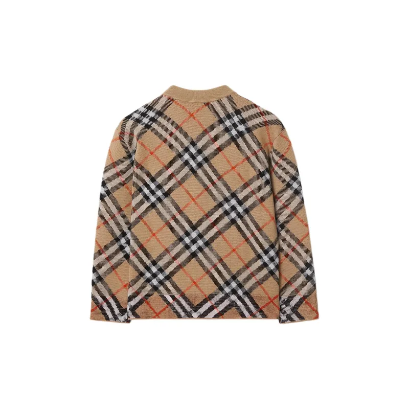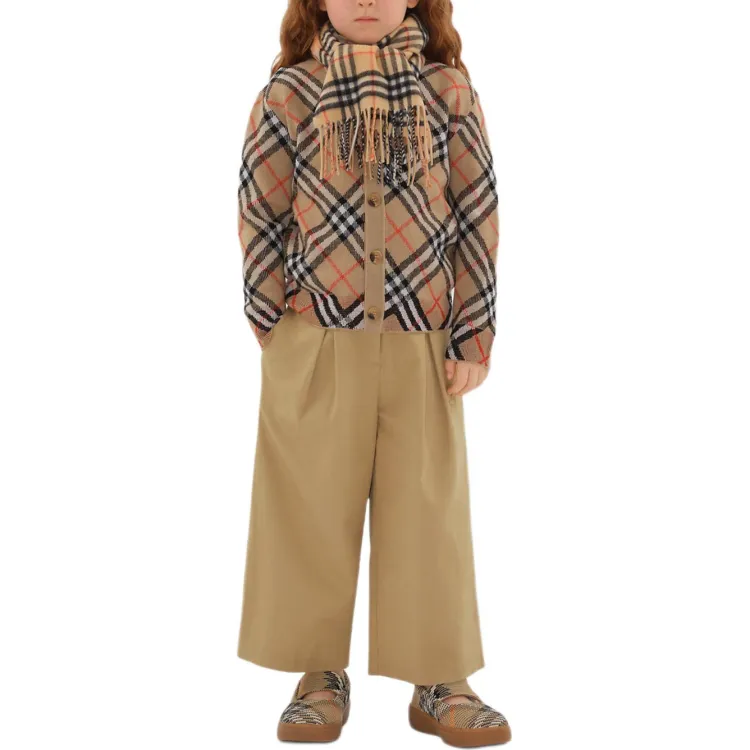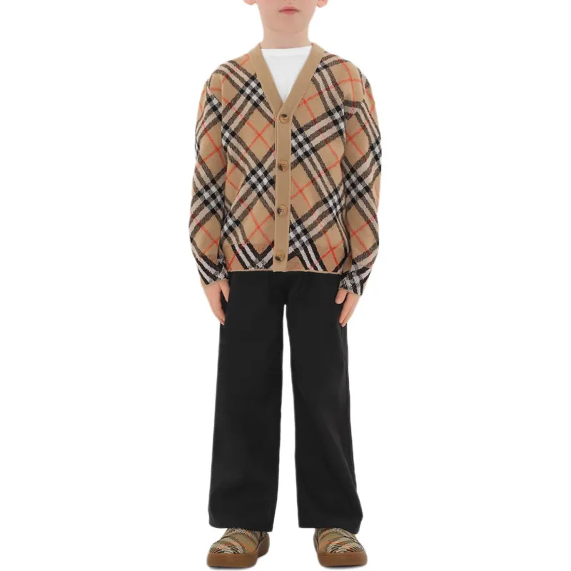 Burberry FW24 Полосатый V-образный вырез Одинарный ремень Длинный рукав Песочный Детский