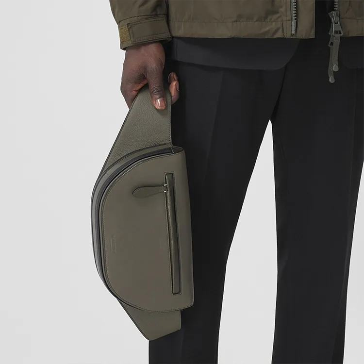 Burberry с рельефной текстурой телячья кожа бананка сумка через плечо маленькая мужская цвет эбеново-зеленый черный