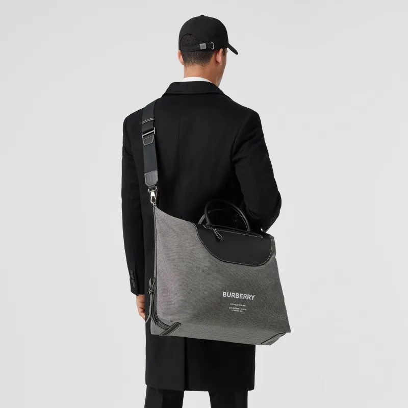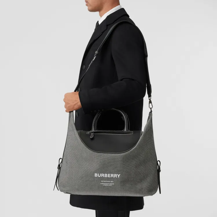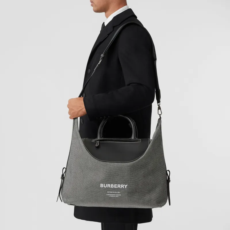 Burberry Horseferry Холст и Кожаная Сумка Мужская Черная Серая