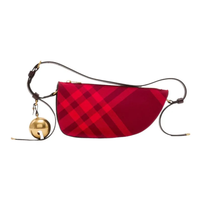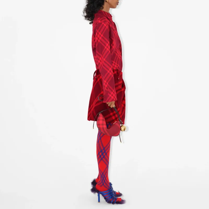 Burberry Жаккард Ткань Вязаная Клетка с Гладкой Телячьей Кожей Сумка через плечо Мини Женская Красная