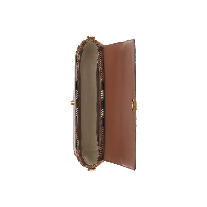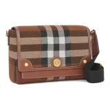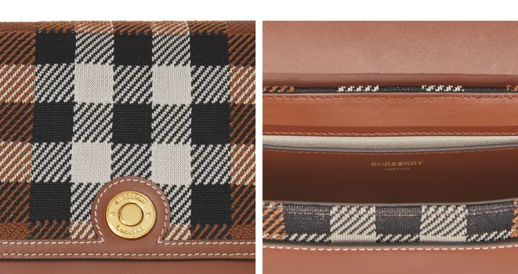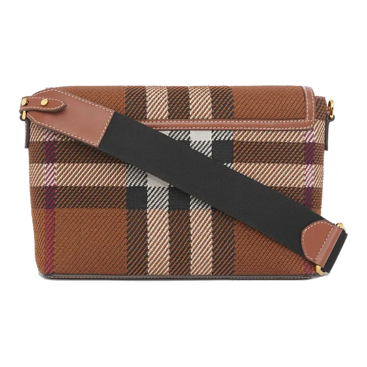 Burberry Трикотажная ткань с кожаными вставками ручная сумка через плечо женская темно-коричневый цвет "Береза"