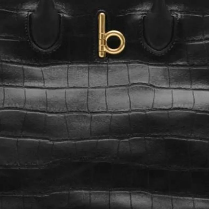 Burberry Lambskin Tote Bag Shopping Bag Small Unisex Black