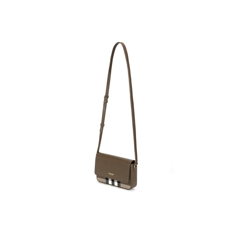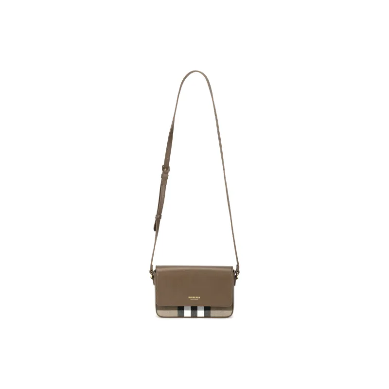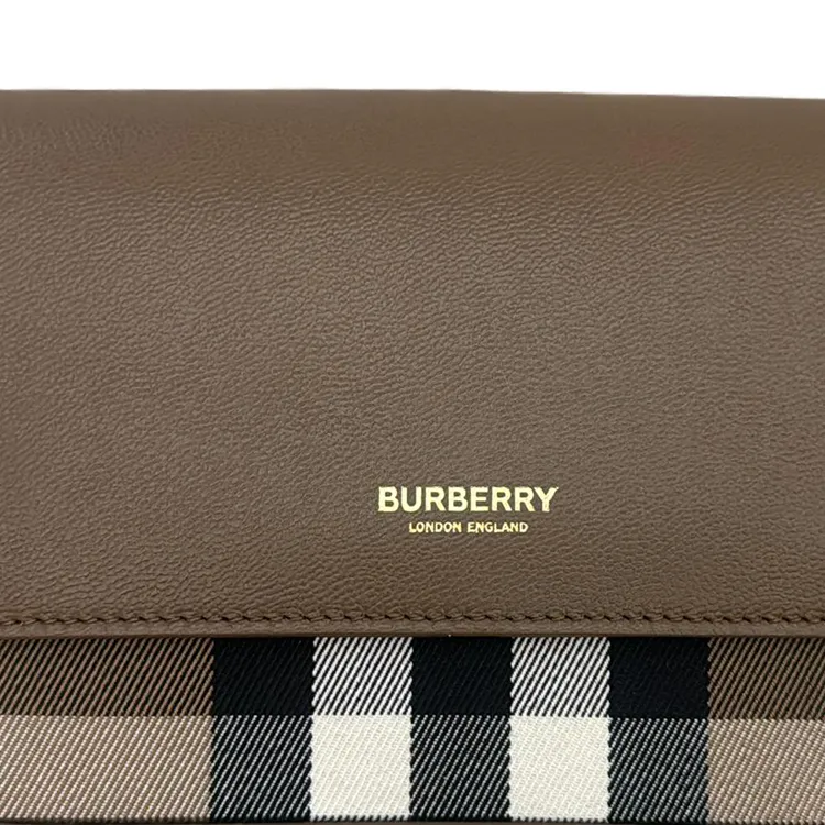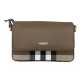 Burberry Кожа Панельная Холст Сумка через плечо Женская Коричневая
