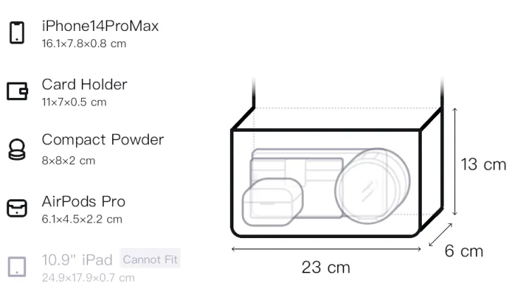 Длина: 23 см, ширина: 6 см, высота: 13 см
