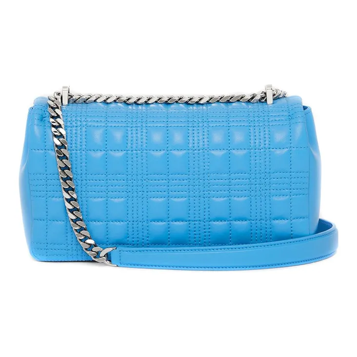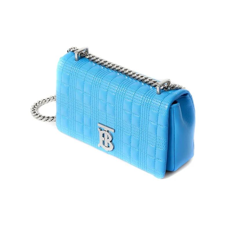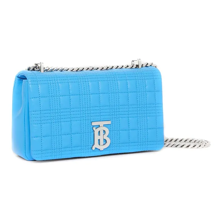 Burberry Lola Сумка Лоскутное Шитье Овечья Шкура Сумка для Хранения Портативная Сумка через Плечо Сумка на Плечо Женская Яркая Небесно-Голубая