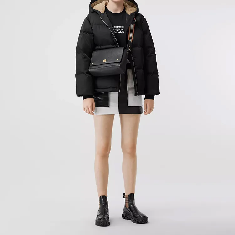 Burberry Note Телячья кожа Курьерская сумка Сумка через плечо Стандартная Женская Черная