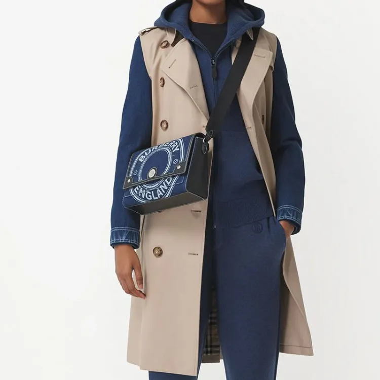 Burberry Note Хлопок Корова Кожа Курьер Сумка через плечо Сумка Обычная Женская Синяя