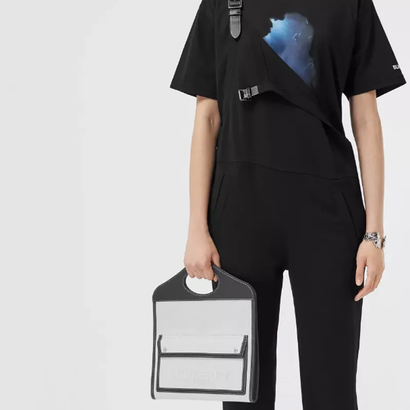 Burberry Карманная сумка Холст с кожей Сумка Цвет холста Клатч Сумка Маленькая Унисекс Синяя