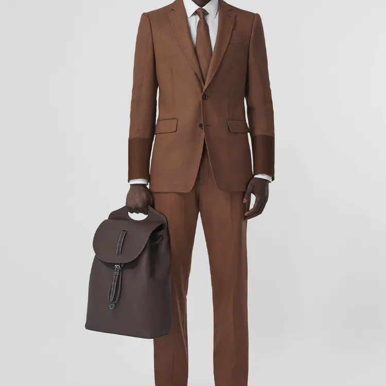 Burberry Pocket Bag Leather Backpack Men's Dark Gray Brown