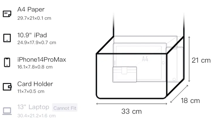 Д33*Ш18*В21см