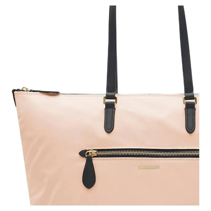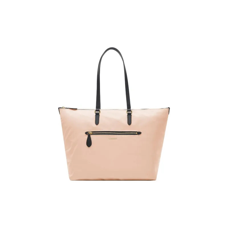 Burberry Nylon Zip Tote Leather Top Handles Zip Closure Exterior Zip Pocket, Interior Zip Pocket
