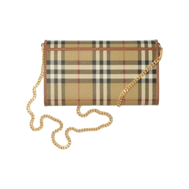 Burberry Бумажник В Клетку На Ремне-цепочке Ремешок-цепочка Откидной Клапан С Застежкой На Кнопку 12 Отделений Для Карт