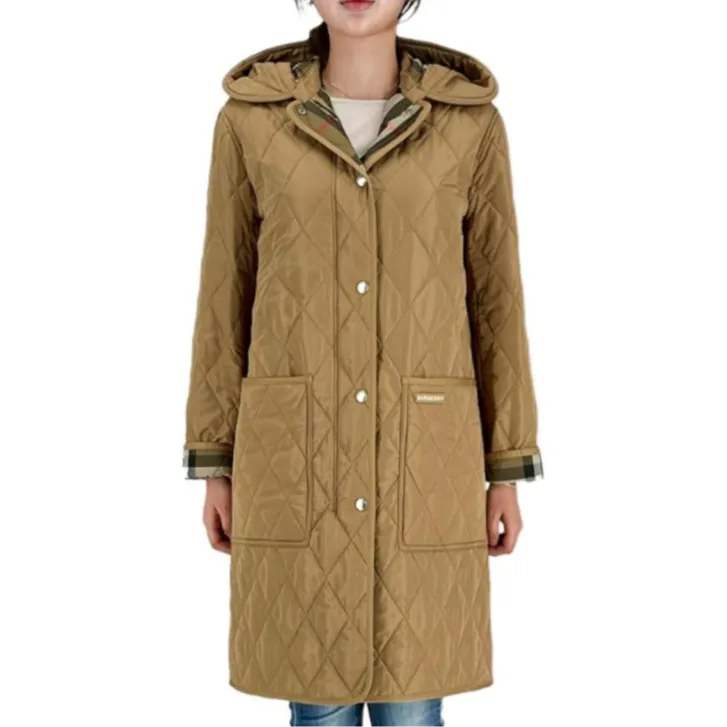 Burberry Хлопковый пуховик женский бежевый