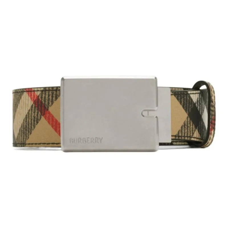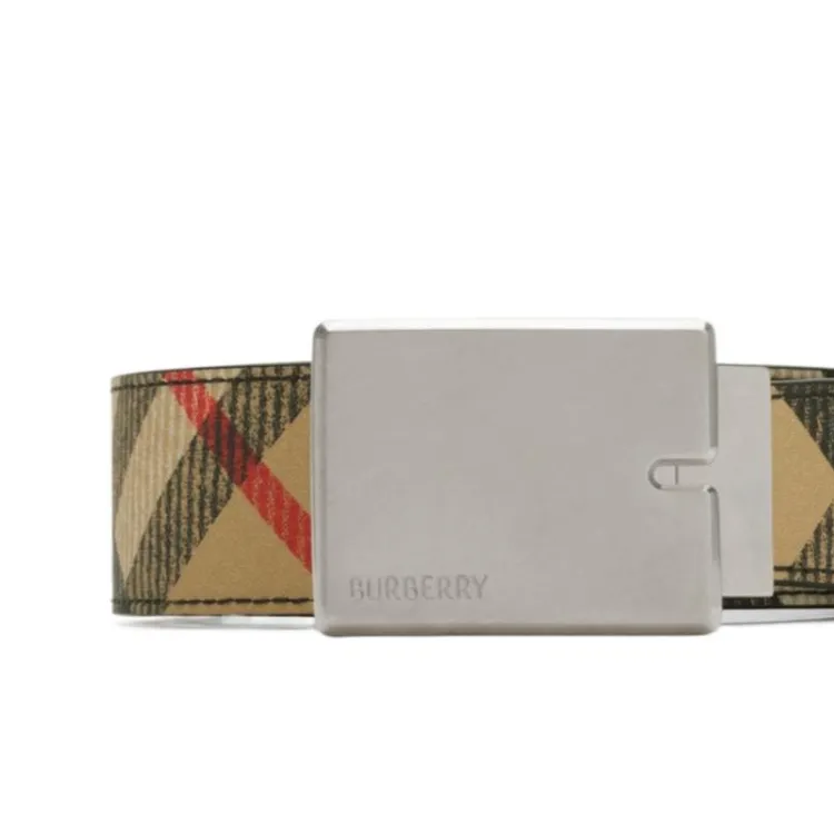 Burberry Двухсторонний Ремень B Cut В Клетку Вручную Прокрашенные Края Фурнитура Из Блестящего Металла Логотип Burberry, Гравировка