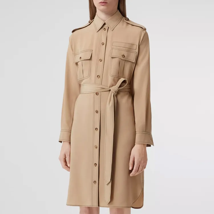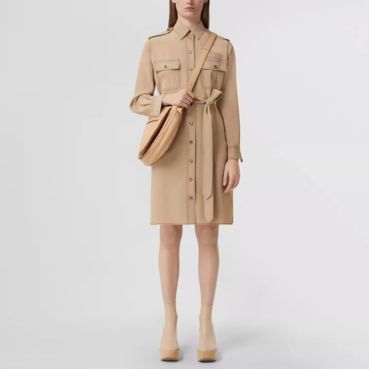 Burberry SS22 Длинное платье с длинными рукавами женское мягкий рыжевато-коричневый