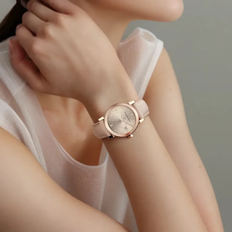 Burberry Женские часы Кварцевый механизм ремень из натуральной кожи 34 мм розовое золото циферблат часы