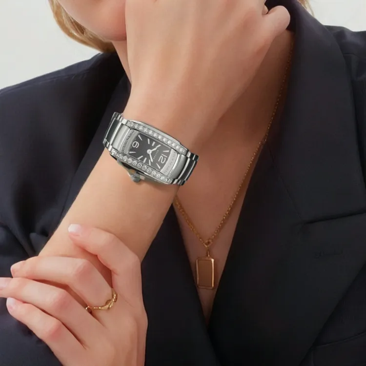 BVLGARI ASSIOMA D Collection Женские часы Кварцевый механизм Ремешок из нержавеющей стали 26 мм Черный циферблат