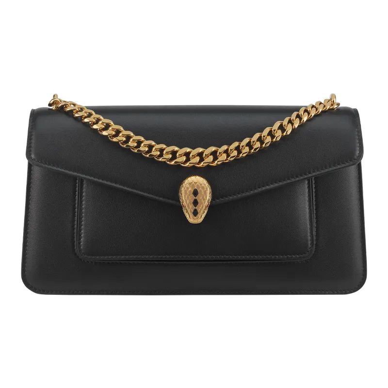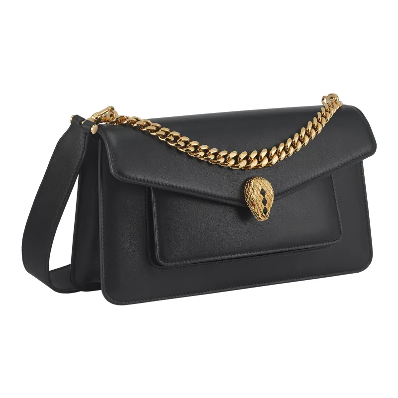 BVLGARI Serpenti East-West Maxi Chain Сумка На Плечо Магнитная Застежка В Виде Змеиной Головы Из Позолоченной Латуни