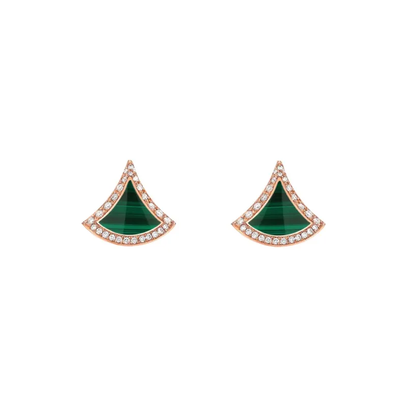 BVLGARI DIVAS’ DREAM Серьги Серьги-пуссеты Divas' Dream, Розовое Золото 18 Карат, Вставки Из Малахита, Бриллиантовое Паве
