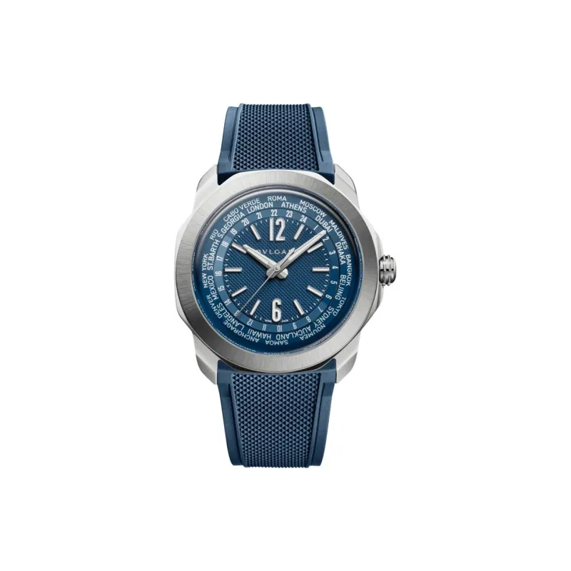 BVLGARI OCTO Watch Автоматический Механический Механизм Резиновый Ремешок 41 мм Синий Циферблат Унисекс
