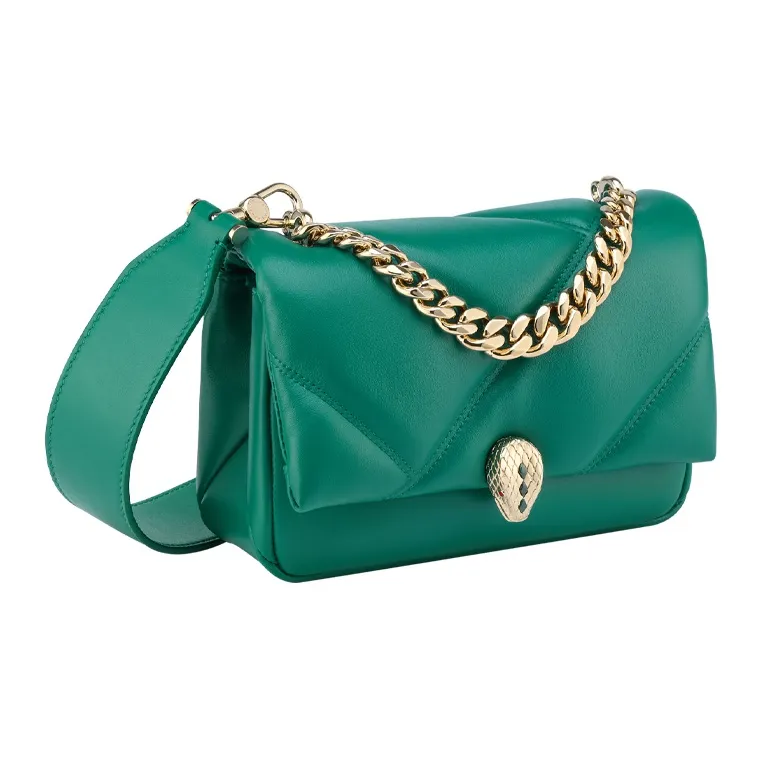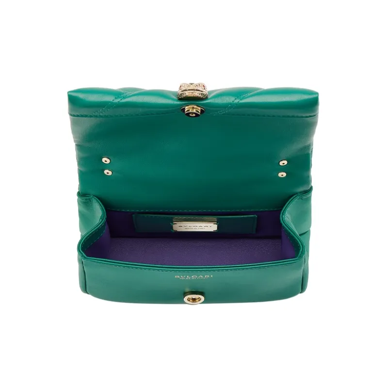 BVLGARI Serpenti Cabochon Телячья кожа Сумка через плечо Мини Женская Зеленая