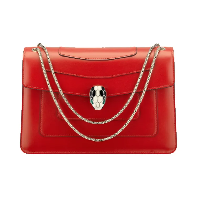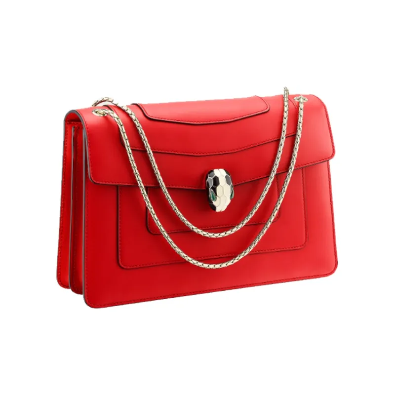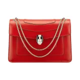 BVLGARI Serpenti Forever Телячья кожа Плечевая сумка Унисекс Красная