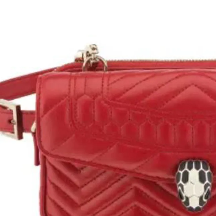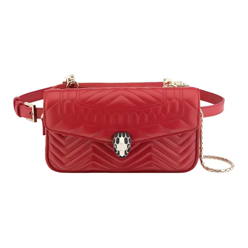 BVLGARI Serpenti Forever Телячья кожа Змеиная кожа Голова Сумка Через плечо Бананка Женская Красная